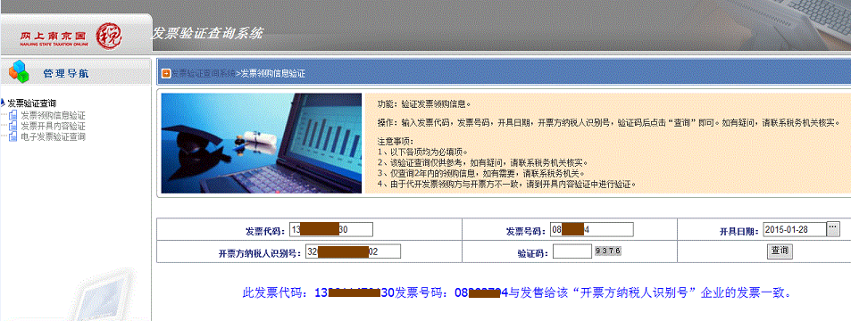 注:非增值税专票,可登陆当地税务系统的发票验证页面进行,根据本次提交结算发票的发票代码、发票编号、开票时间等相关信息进行查询,页面显示对应发票号码认证通过信息,截图打印即可。